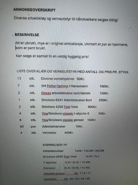 Klær og verneutstyr