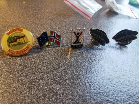Diverse pins og merker selges samlet