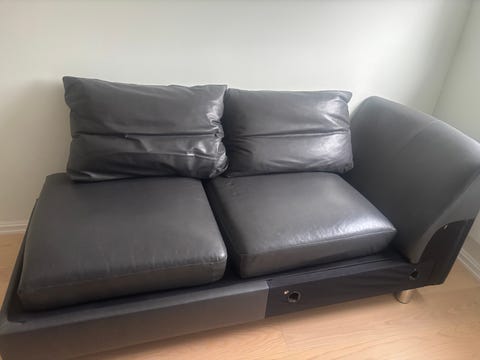 Sort skinnsofa gis bort