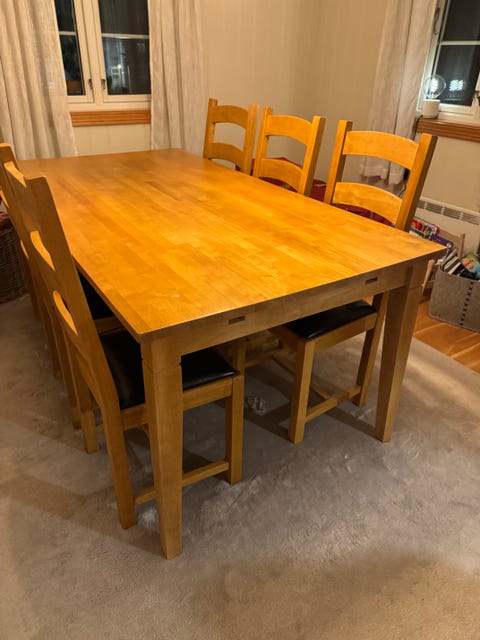 Seks spisestoler selges