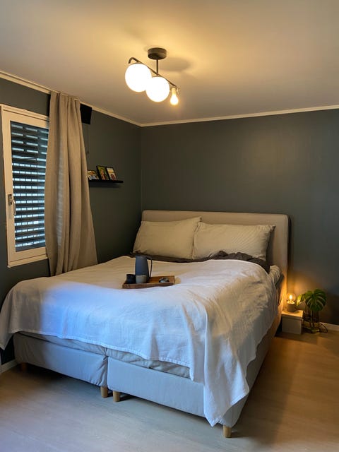 Reservert! Koksgrå sengegavel