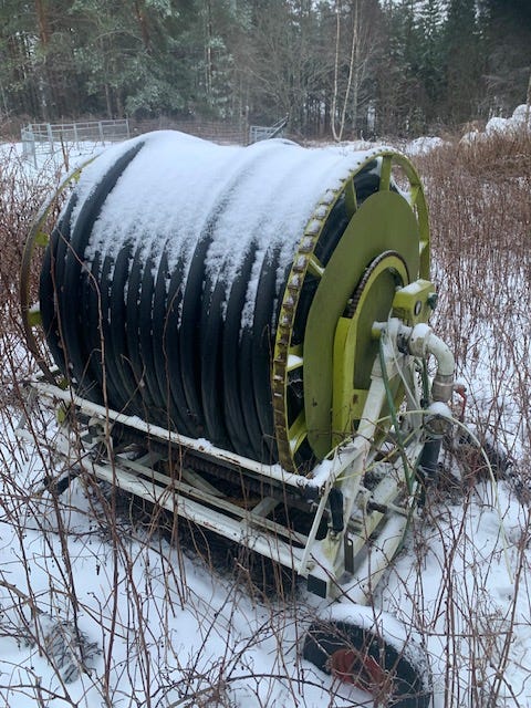 Vanningsvogn med pumpe og slanger.
