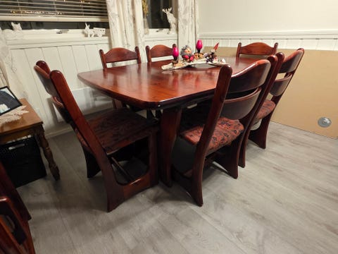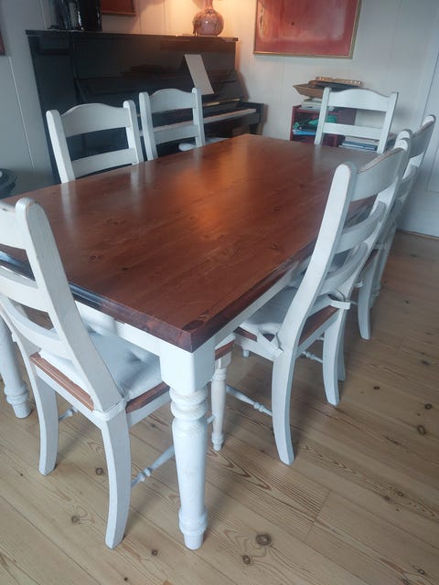 Fint brukt spisebord med stoler