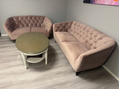 Skinnsofa og bord / salong