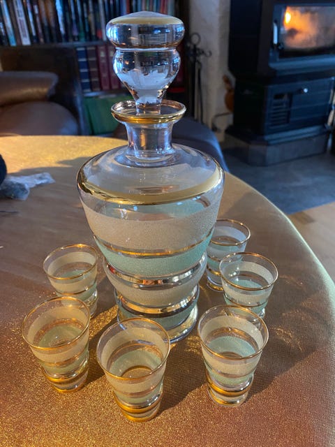 Glasskaraffel med seks glass