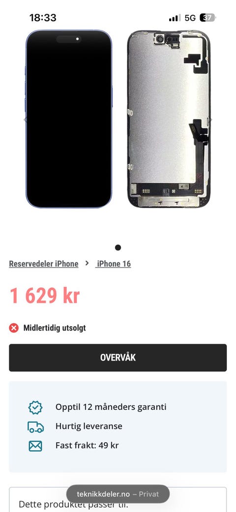 Iphone 16 OLED SKJERM