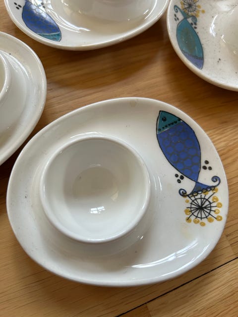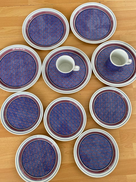 Blå Grete. Figgjo. 6 kakeasjetter