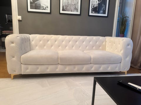 Nydelig 3 seter HVIT FLØYEL