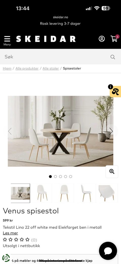 Lom spisestue med 6 stoler.