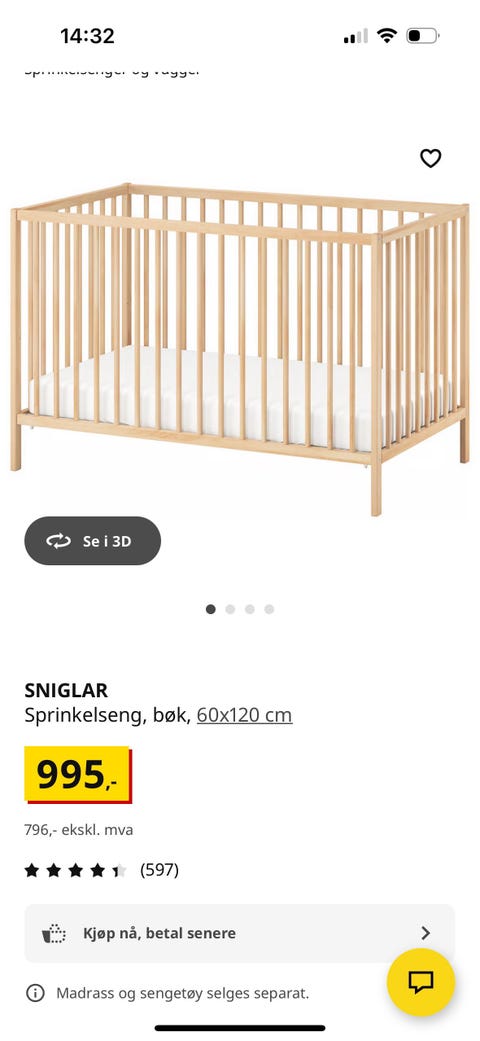 Barneseng med justerbar lengde