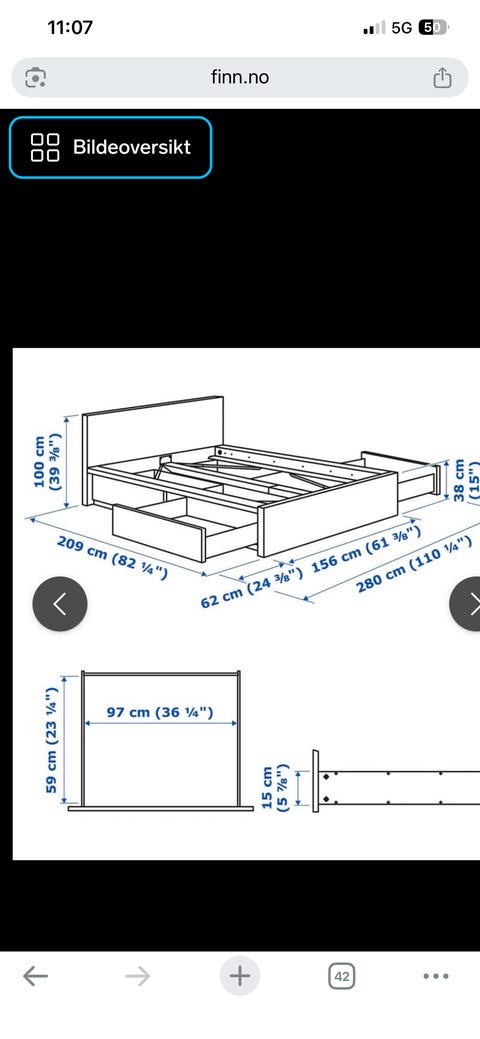 Antikviteter og kunst (338)Dyr og utstyr (23)Elektronikk og hvitevarer (748)Foreldre og barn (6 030)Fritid, hobby og underholdning (300)Hage, oppussing og hus (2 443)Klær, kosmetikk og tilbehør (168)Møbler og interiør (42 395)Næringsvirksomhet (257)Sport og friluftsliv (31)Utstyr til bil, båt og MC (17)