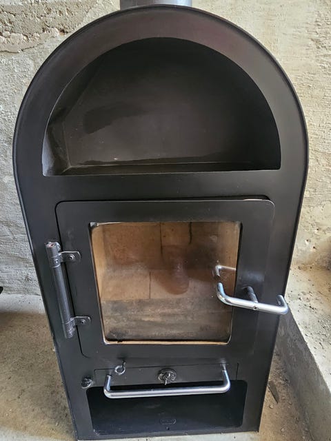 Vedovn med glassdør og pipe