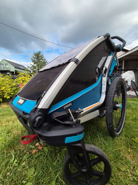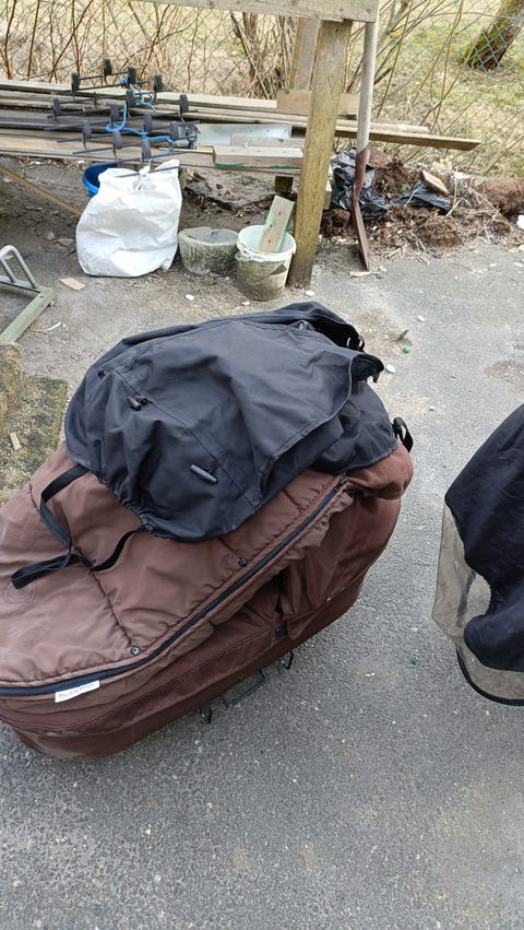 Bilstol og vogn med tilbehør.