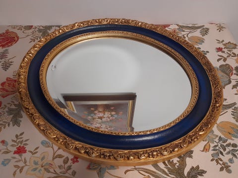 Antikk ovalt fasettslipt speil