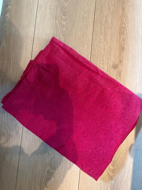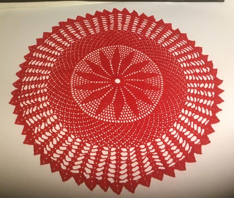 Håndheklet rød duk.
