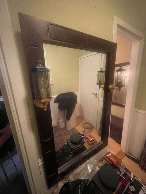 Gammelt speil med lamper