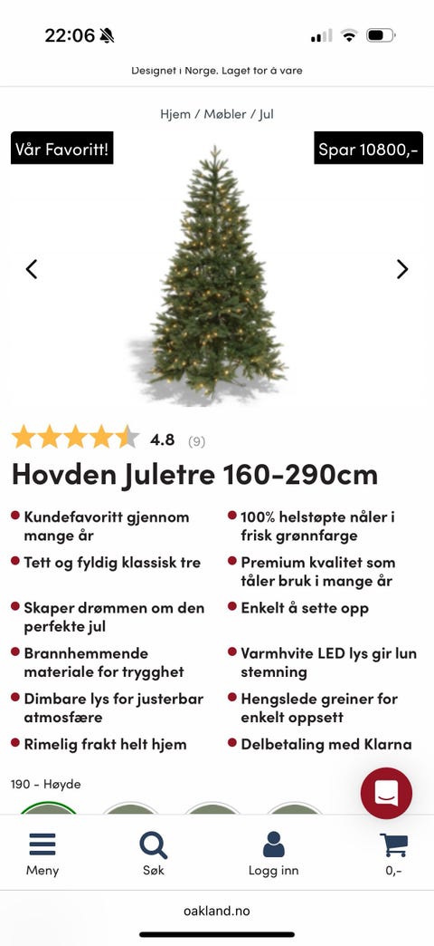 Oakland Hovden juletre 190 cm