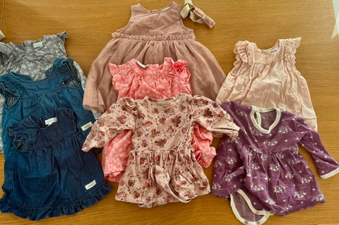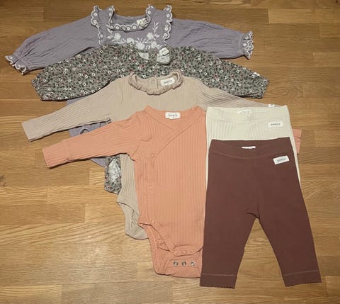 Klespakke str 74, jente, inkl bla pysjer, sparkedress og minni mus kostyme
