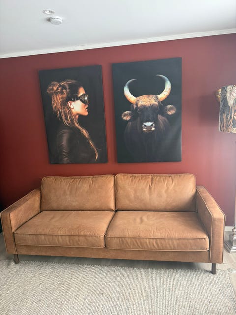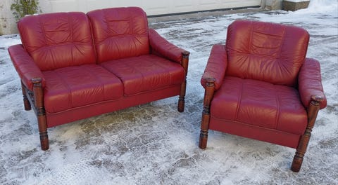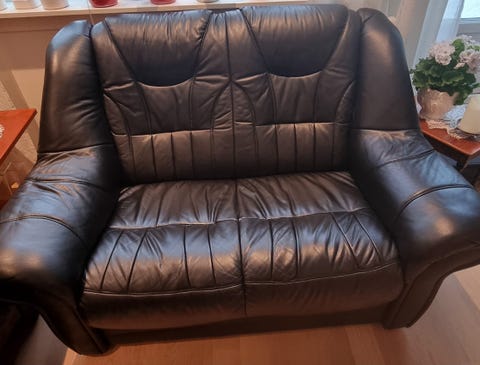 2-seter skinnsofa.
