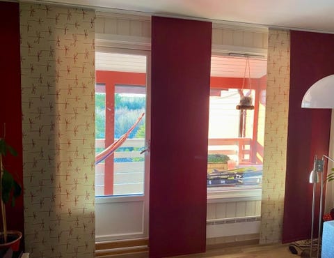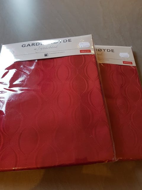 4 lengder røde gardiner.