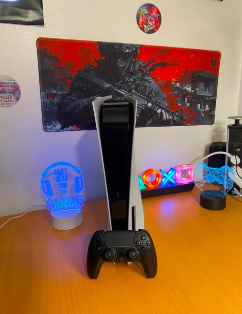 Sony Playstation 5 spillkonsoll med to DualSense-kontrollere og USB-C ladekabel