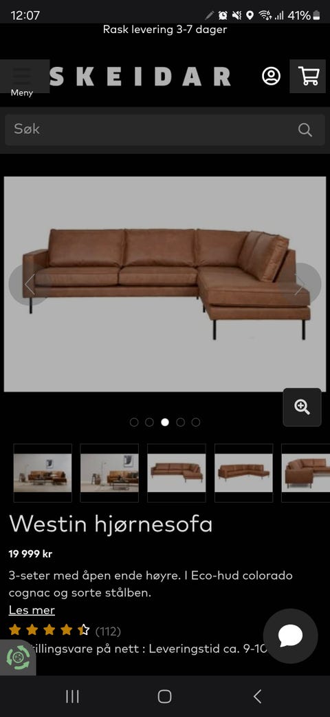 Fin hjørnesofa til salgs