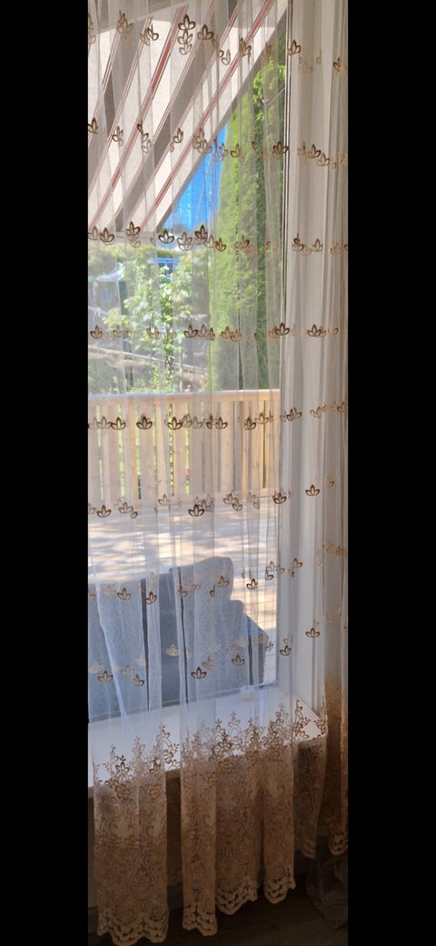 Ett sett gardiner selges