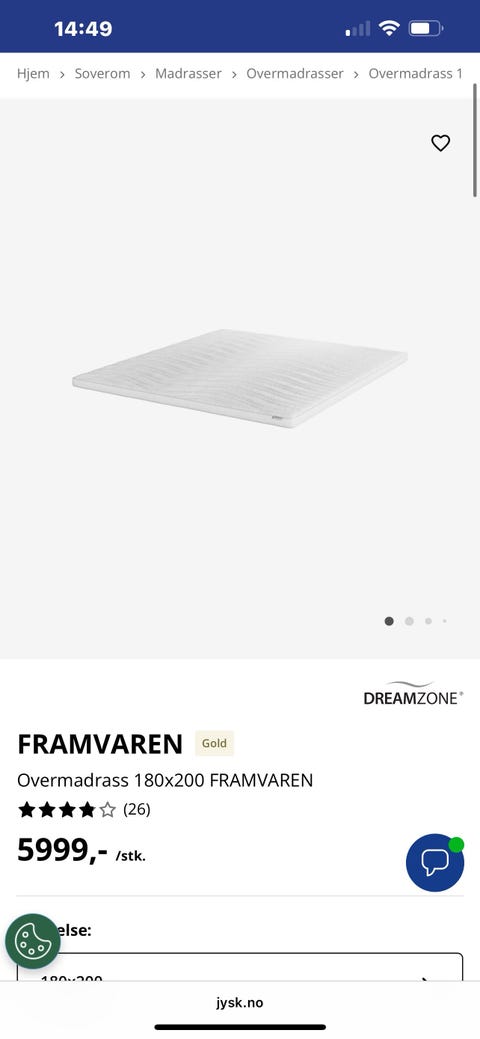 Madrass og overmadrass 180x200