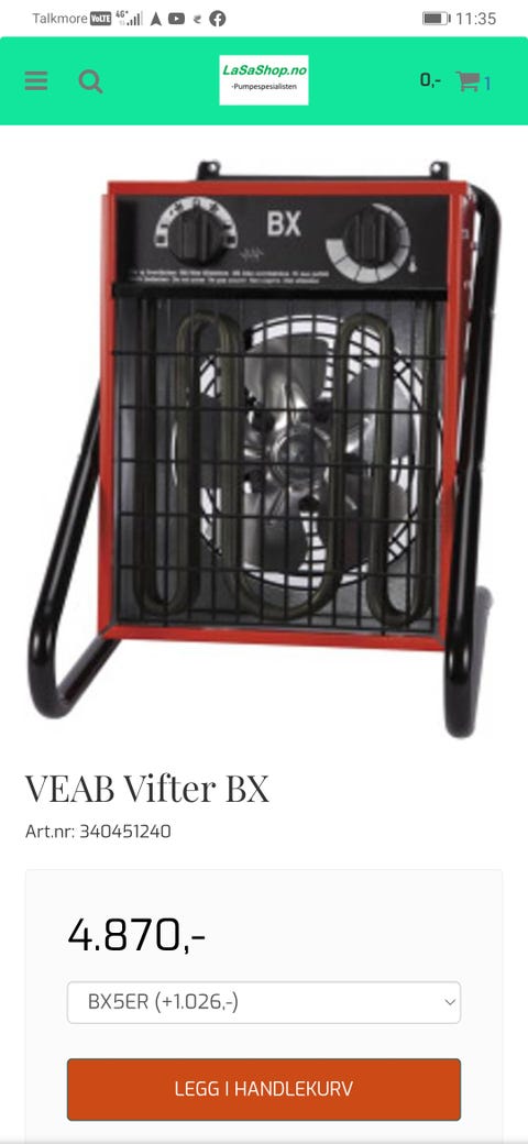 VEAB varmevifte ovn 5kw 230v