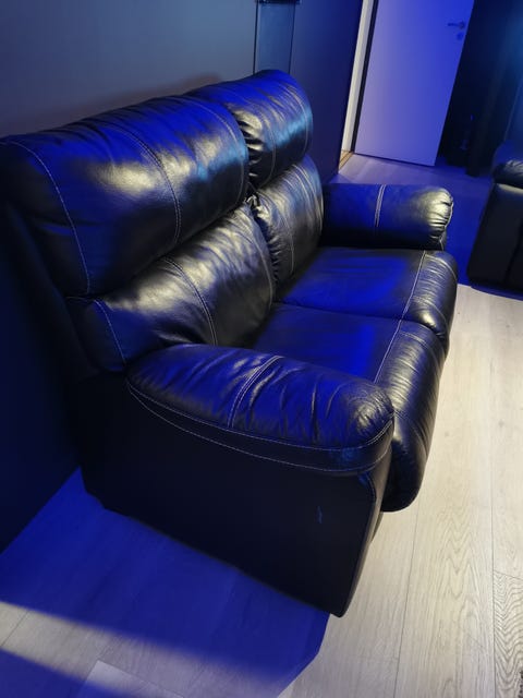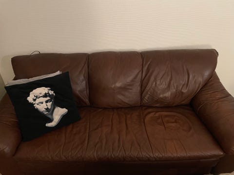 2 seter skinn sofa.