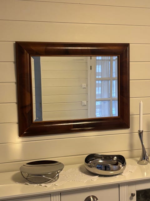 Nydelig speil med bred teakramme