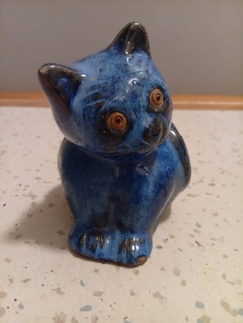 Keramisk blå katt figur
