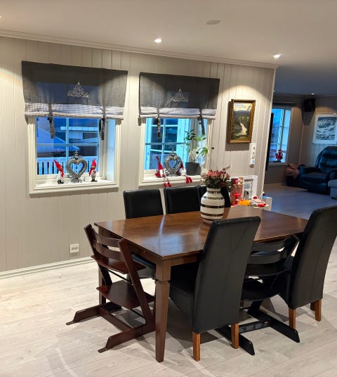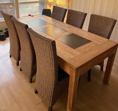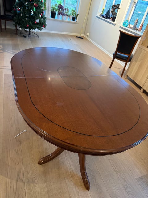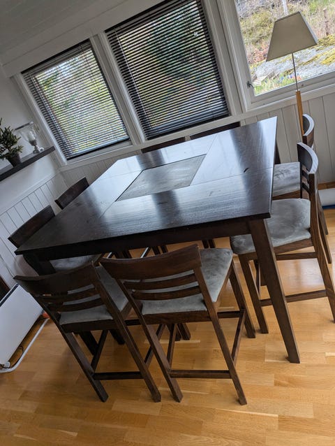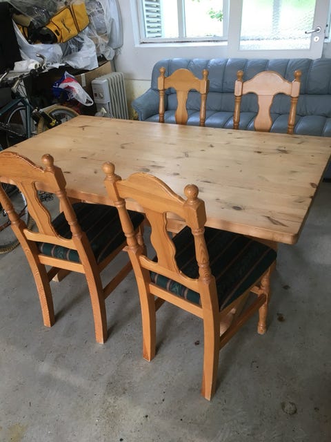 Spisebord og 6 stoler gis bort