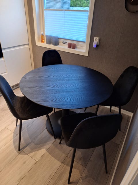 Nytt bord og svarte stoler