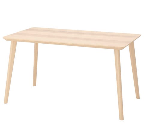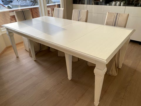 Trehvit spisebord med stoler