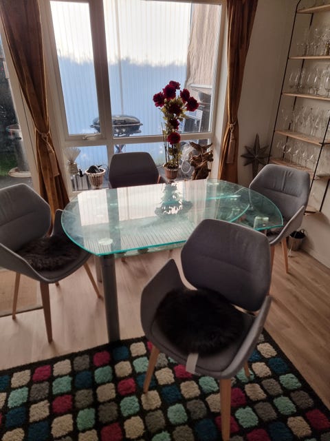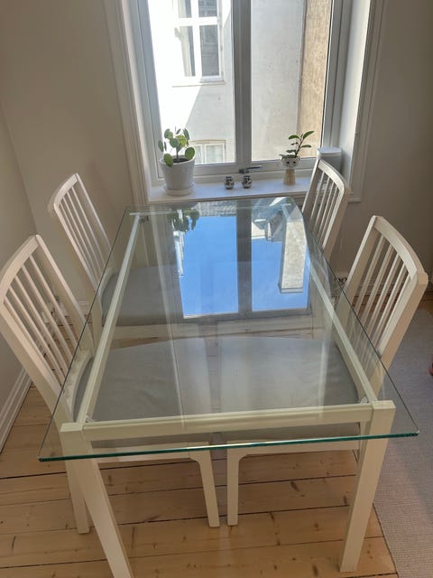 Spisebordet glass med 4 stoler
