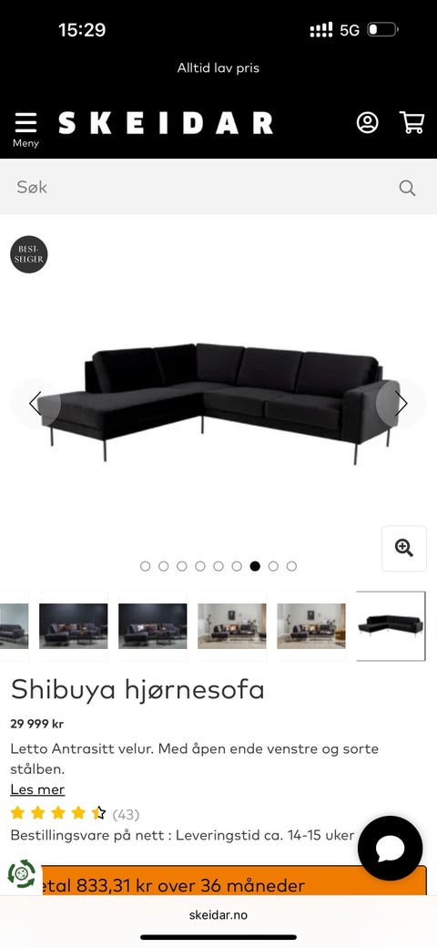 Hjørnesofa fra Skeidar