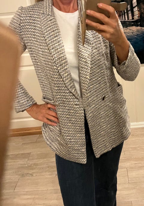 Hvit blazer i bomullssatin fra Michael Kors mainline med håndstitching, 34/XS/0