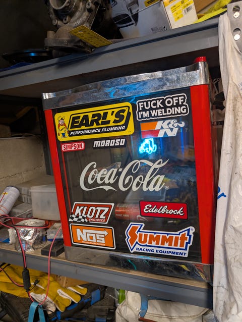 Ønsker kjøpe Redbull bensinpumpe kjøleskap