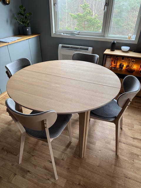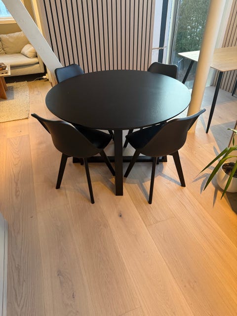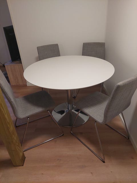 Rundt spisebord med 4 stoler
