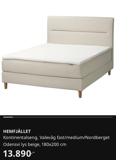 Kontinentalseng 120x200 kjøpes