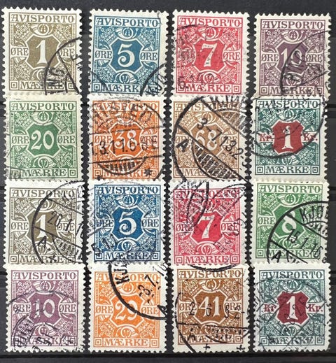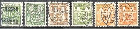 Danmark nr, 11 til 15 stemplet