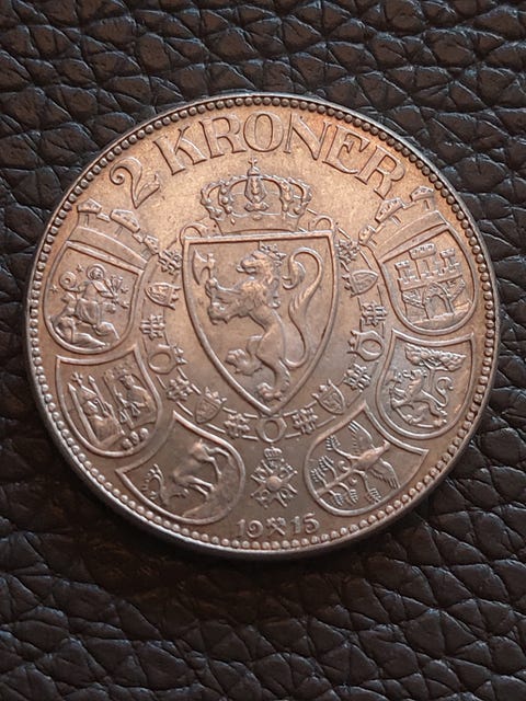 2 kroner Norge sølvmynt 1915