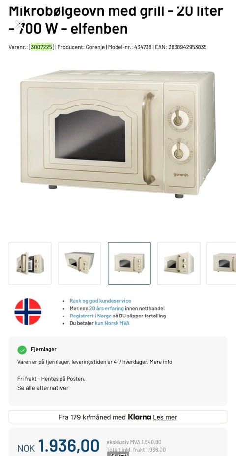 Mikrobølgeovn selges