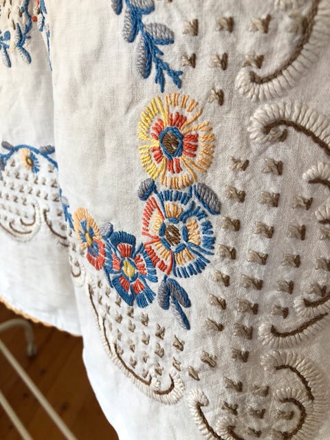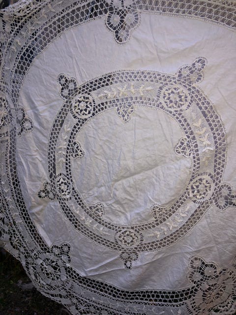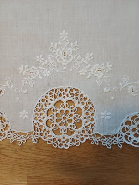 Nydelig hvit lin damask duk