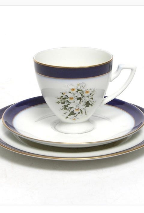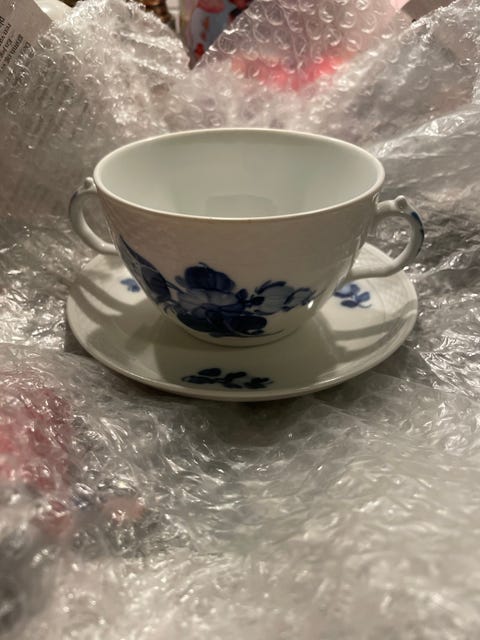 Royal Copenhagen Musselmalet Kaffekopp og Tallerkener Blått og Hvitt Porselen