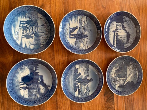Royal Copenhagen Musselmalet Kaffekopp og Tallerkener Blått og Hvitt Porselen