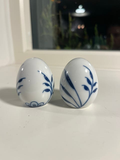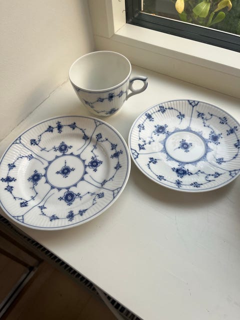 Royal Copenhagen Musselmalet Kaffekopp og Tallerkener Blått og Hvitt Porselen