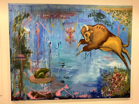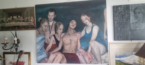 STORT LEKKERT OLJEMALERI AV MYHRA
