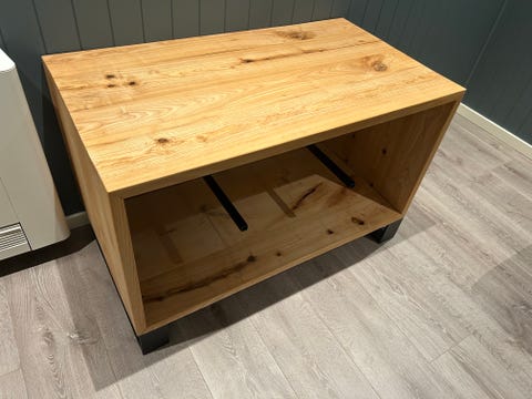 TV-benk i tre med metallben